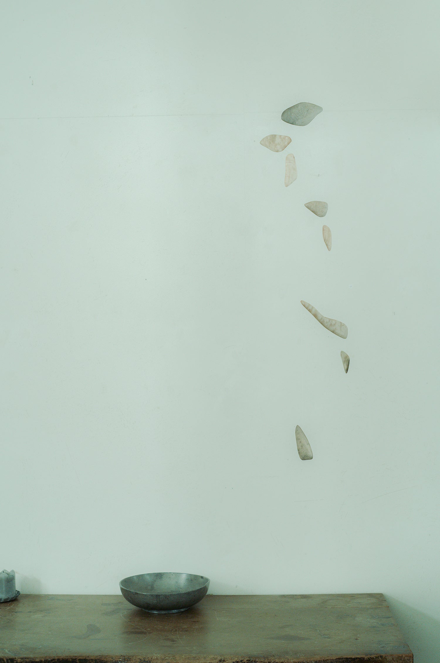手を動かして構築するのと同時に、空間に生まれる余白を受け取る、モビールの制作は、作為的につくること、無作為に委ねることの連続です。