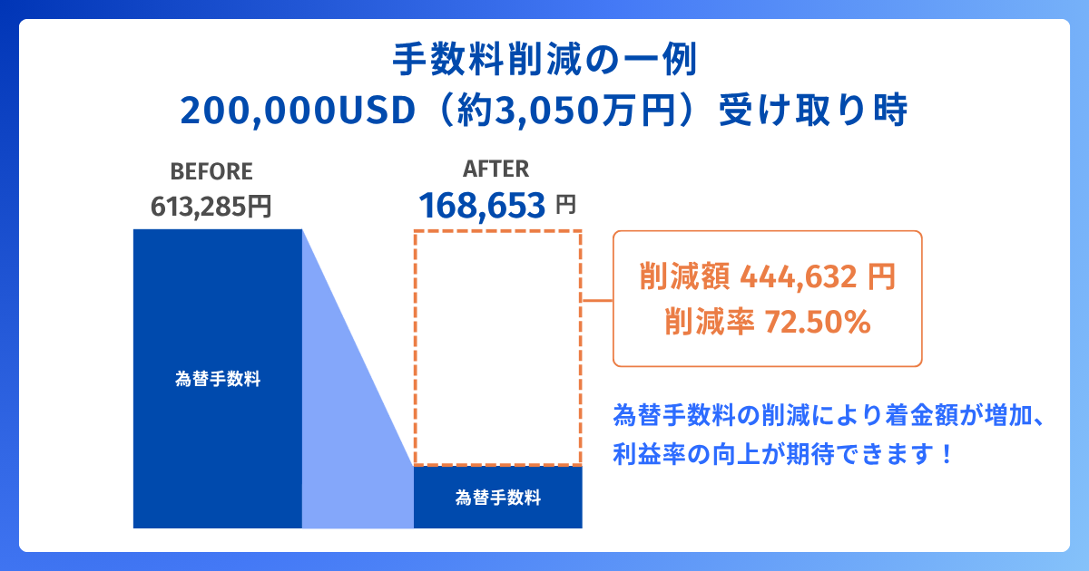 グローバルセリングなどの越境ECに出店する事業者にとって、入金管理や高額な国際送金手数料は大きな課題です。当社の外貨受取専用口座を利用すれば、海外からの入金をスムーズに受け取ることができるだけでなく、手数料も最大で約85%削減することが可能です。