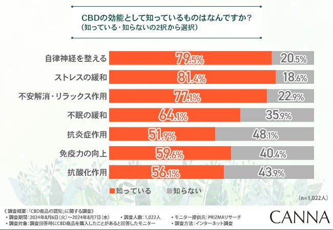 ■CBDの効能として知っているものはなんですか?(知っている・知らないの2択から選択)