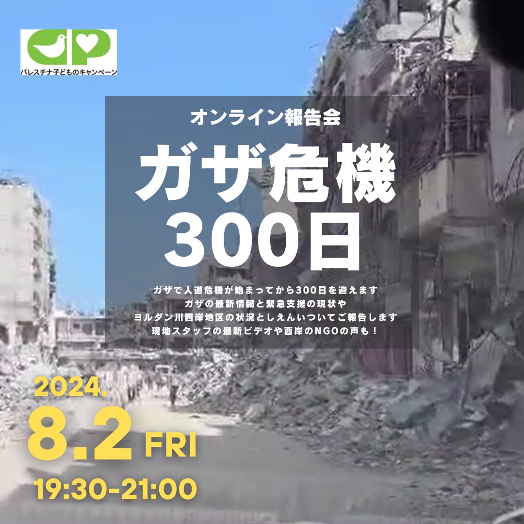 ガザ危機300日~安全な場所がないガザで支援活動を続ける認定NPO法人パレスチナ子どものキャンペーンのオンライン報告会~