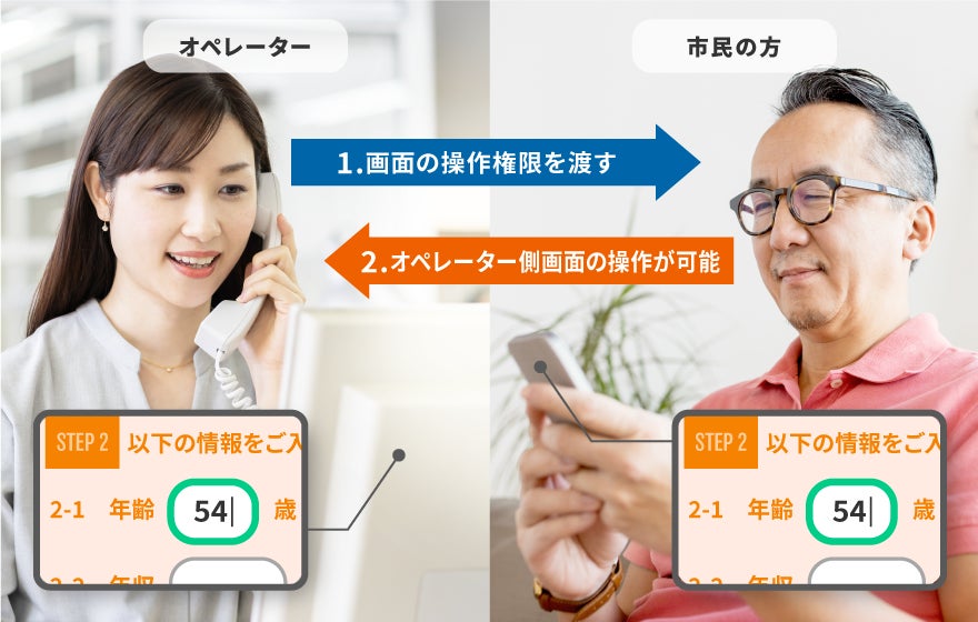 本サービスは、ベルフェイスが開発・販売を行う電話面談システム「bellFace(ベルフェイス)」とベルシステム24のコンタクトセンター運用知見を活用することで、企業や自治体と生活者間における、煩雑な手続きを電話と映像を同時に繋ぎリモートで支援するサービスとなります。利用者側はアプリのインストールやURL発行などの事前準備をすることなく、電話・パソコン・スマートフォン*1等を使って簡単に、オペレーターに音声で問い合わせをしながら手続き書類の共有等を行うことができます。