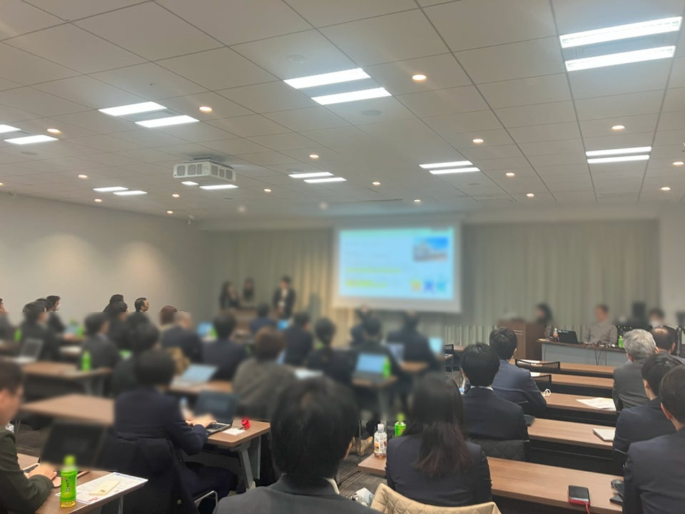 CRFでは人材育成にも力を入れております。2024年9月にワークショップ形式の人材育成イベントとして第4期目となるカーボンリサイクル大学を開校しました。会員企業の若手の方を中心に、異業種の垣根を越えて、会員企業同士でカーボンリサイクル実現に向けてできることを3ヶ月間にわたってグループで議論・検討してきました。12月18日にはその集大成としてグループ発表会を開催しました。グループ毎にまとめた熱のこもった事業提案を、自社の上司の方や会員の皆様に向けて、発表していただきました。企業や自治体にヒアリングするなど、一次情報を自ら取りに行き、また、事業性などを定量的に評価して示すなど、説得力のあるプレゼンとなっていました。聴講者からは、自由な発想に基づくアイデアに対する高評価やこの研修に留まらない様な事業化を促すコメントも頂き、年々活動の水準が上がっていることを実感しております。
