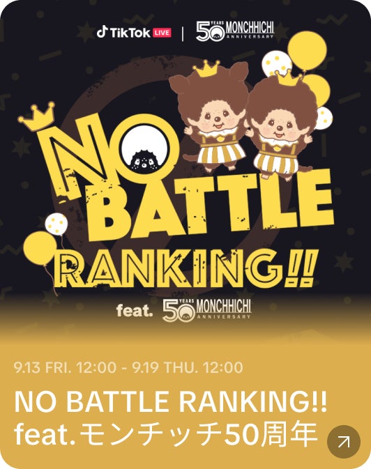 『TikTok LIVE NO BATTLE RANKING feat. モンチッチ50周年』の参加者にはモンチッチ限定グッズなどの豪華特典や、巨大広告にモンチッチと一緒に掲載されるチャンスも!