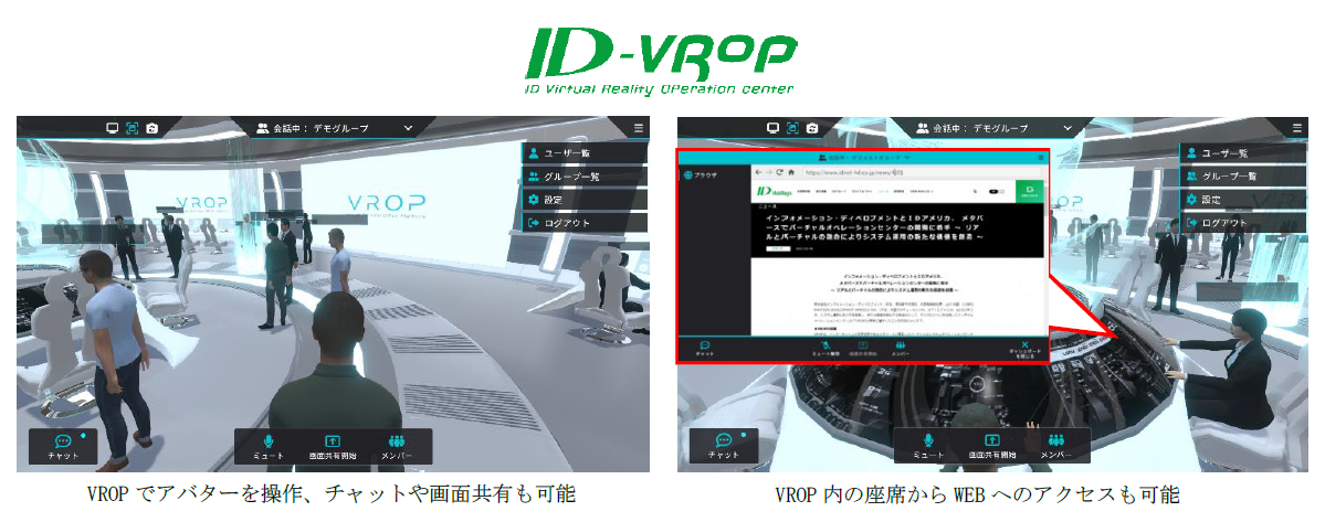 当社グループは2022年9月に提供を開始したSaaS型システム運用「Smart運用サービス※1」にて、複数拠点が連携した運用業務を行うことで、お客さまの事業継続を実現しています。今回のVROP開発を通じてメタバースを利用した拠点間のコミュニケーションや連携の強化を図り、さらなるサービス向上に繋げます。また、VROPと先日販売を開始した対話型AI「ID AI コンシェルジュ※2」を組み合わせることによって、バーチャル空間上で生成AIを活用した新たなシステム運用の創出を目指します。