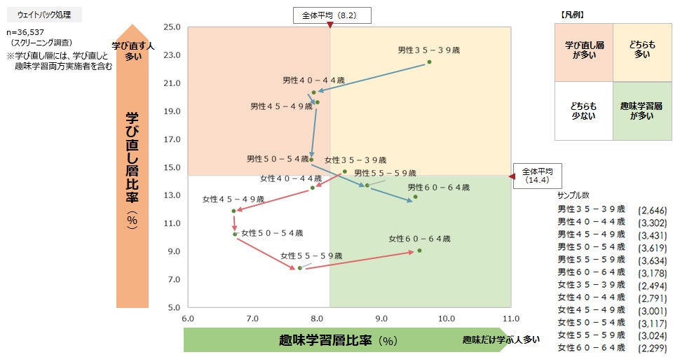 ※1 学び直す意欲はあるが、趣味の学習だけしている層