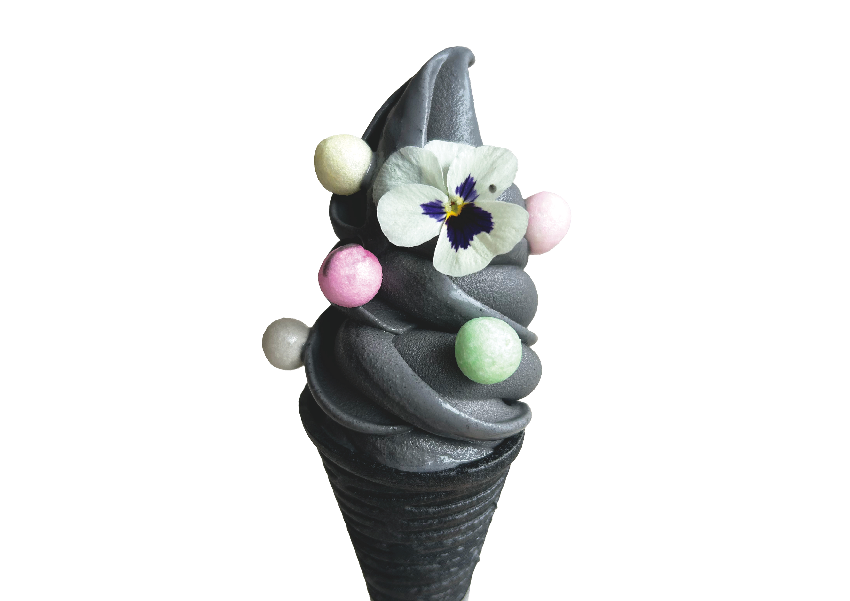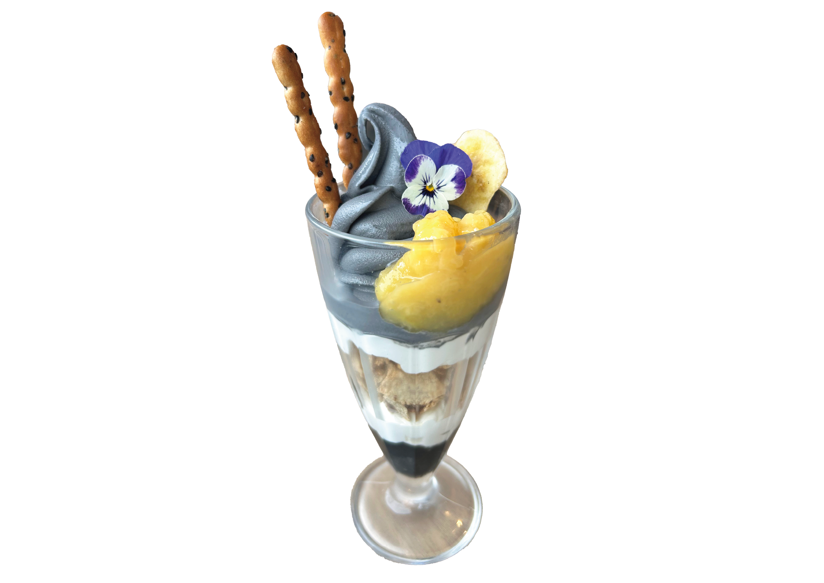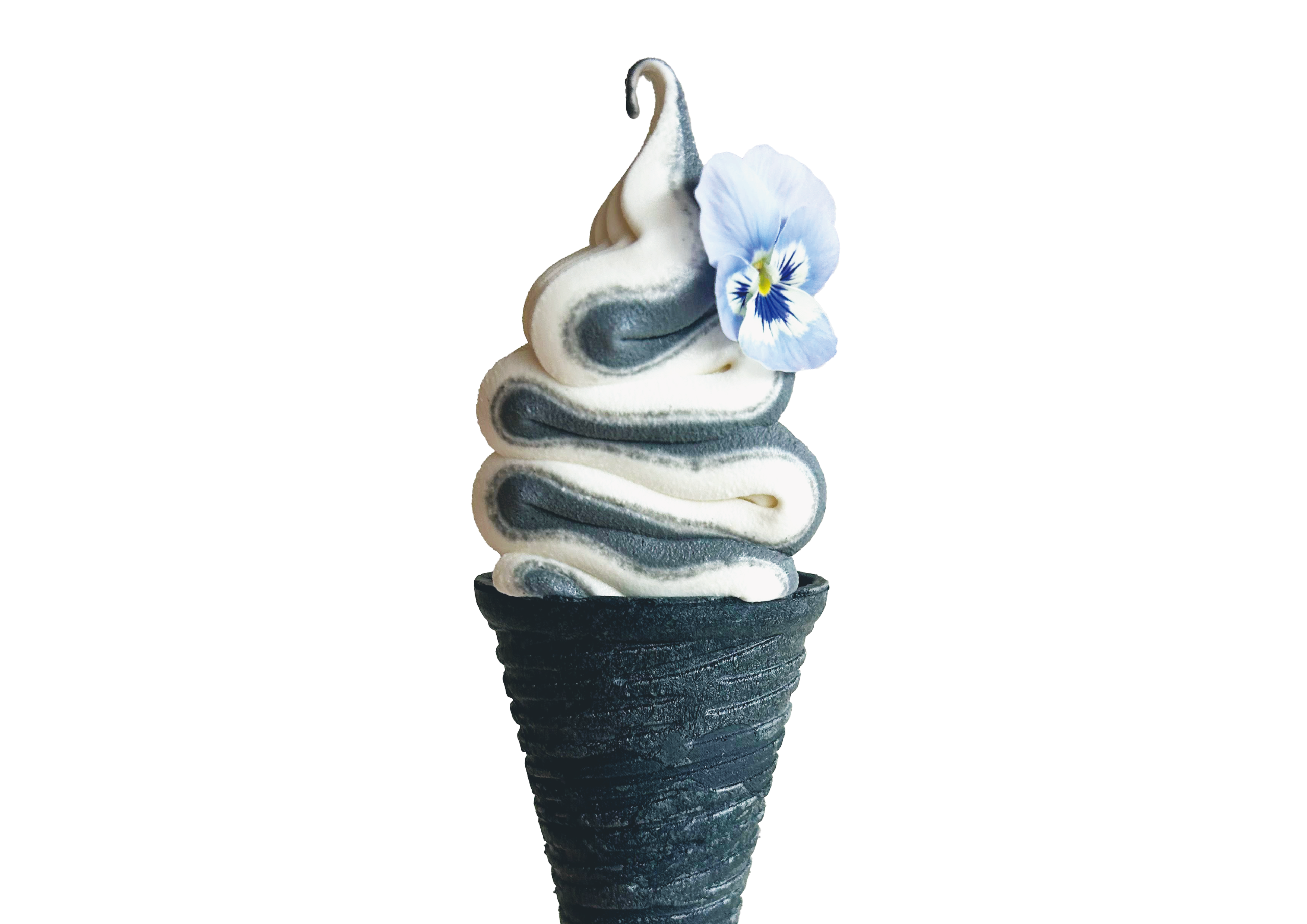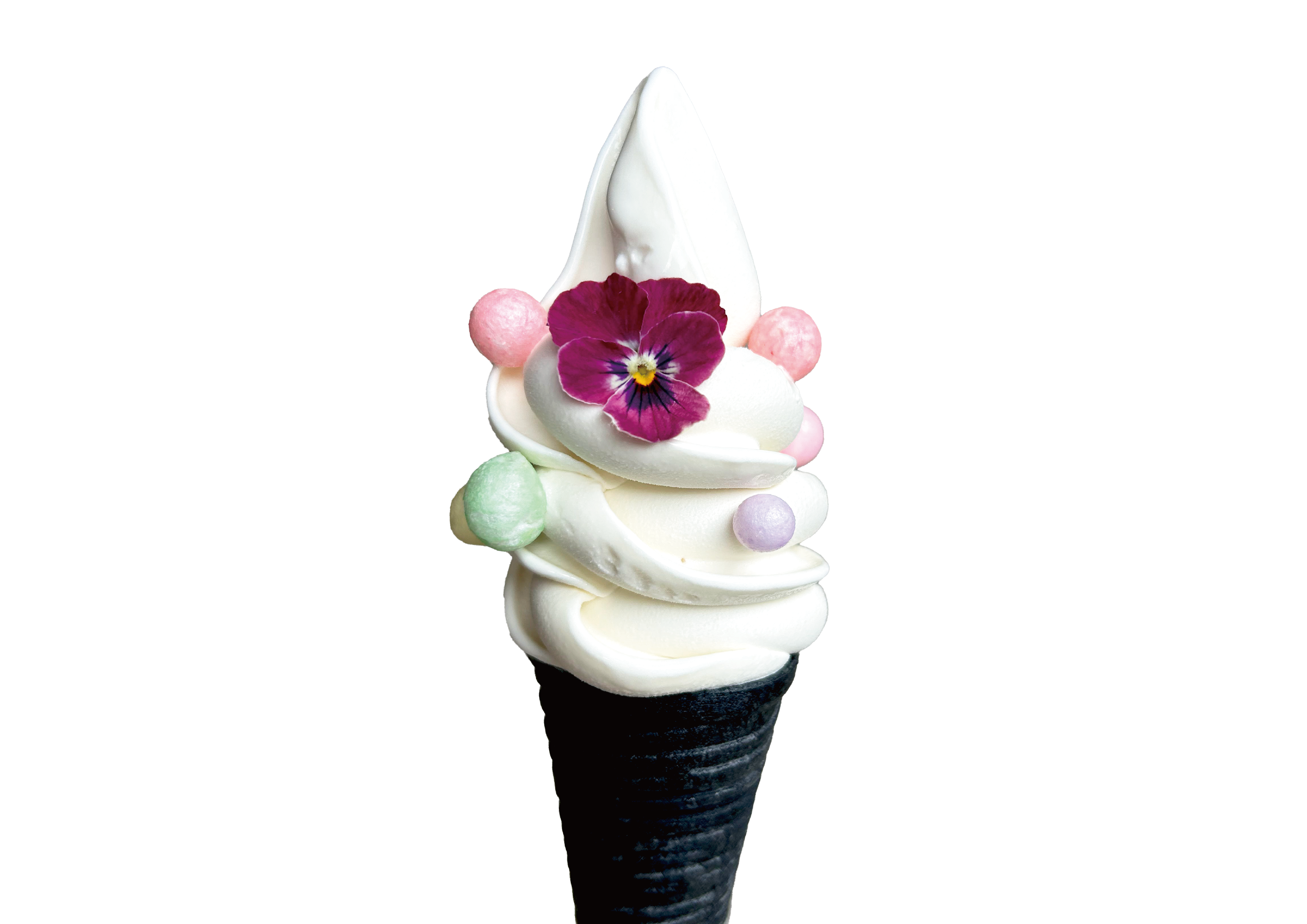 自家製米麹甘酒と黒ごまをミックスした当店オリジナルのソフトクリーム