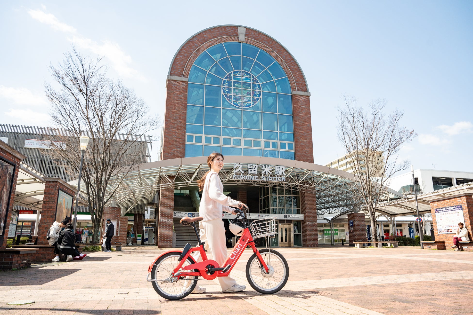 2024年4月より久留米市においてシェアサイクル「チャリチャリ」を展開し、現在までに約270台の自転車と約100か所のポートを運営しています。公共交通機関との接続でラストワンマイルの移動を担うほか、観光スポットへのポート設置により、観戦前後の新たなまちの楽しみ方を提案します。