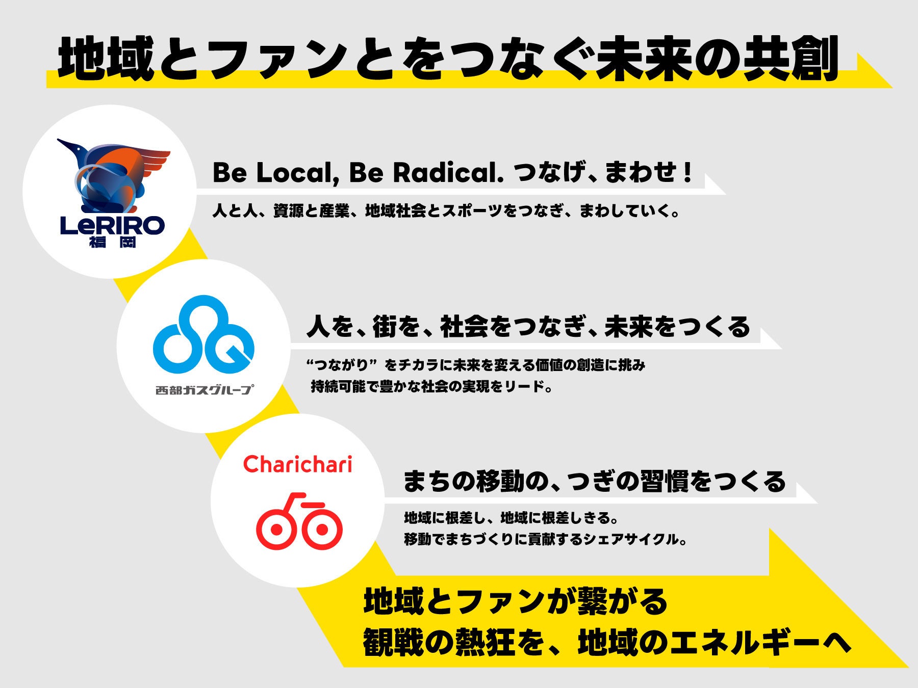 今後3社は、スポーツがもつ力を起点にそれぞれの強みを活かし、ファン・地域・企業が一体となった新しい地域共創の仕組みづくりに取り組んでまいります。