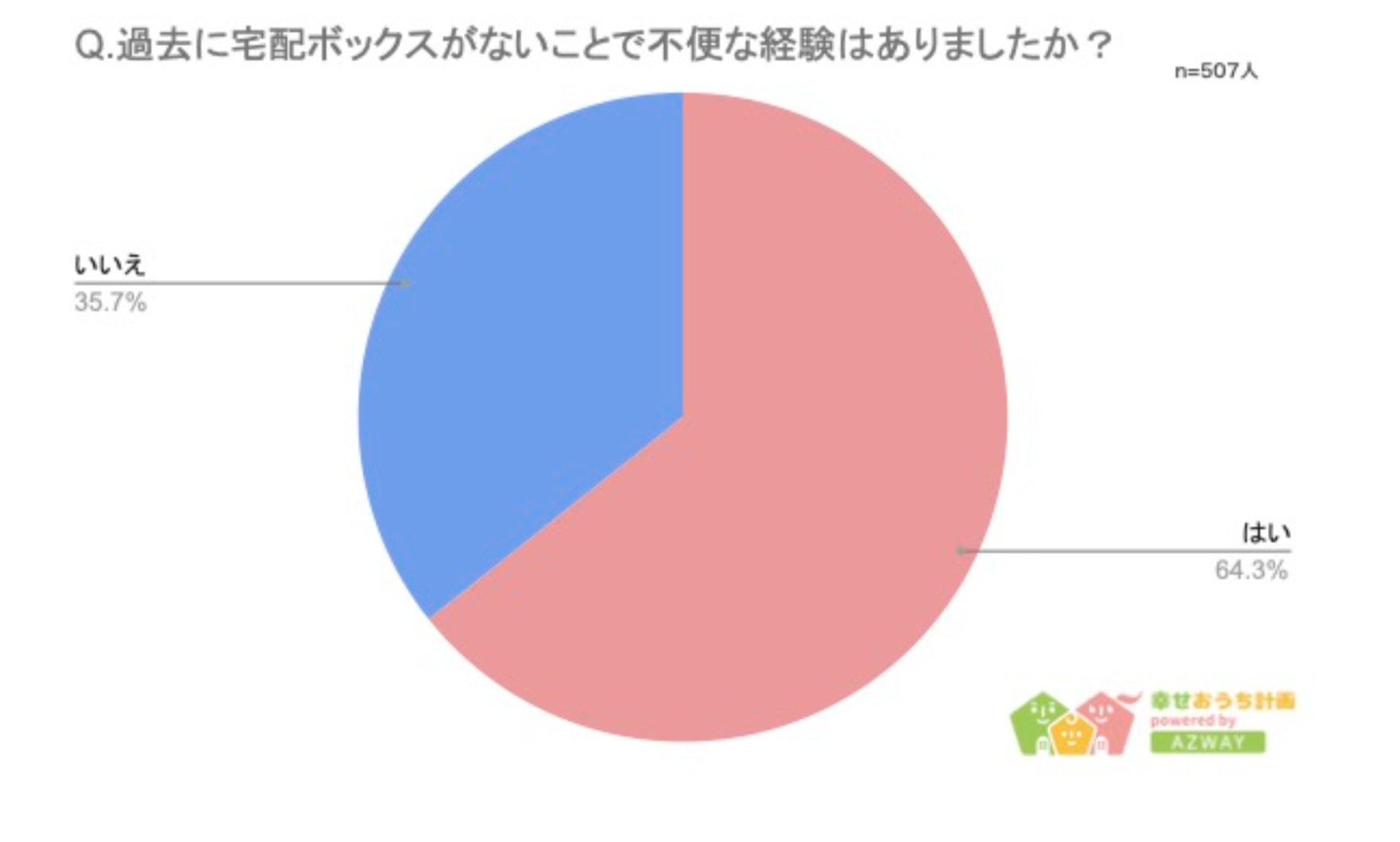 今回不動産メディア「幸せおうち計画」を運営する、株式会社AZWAY(本社:東京都豊島区、代表取締役:井口梓美)は、10代から60代以上までの507人を対象に「宅配ボックスの有無の賃貸物件選びへの影響」についてアンケートを実施しました。