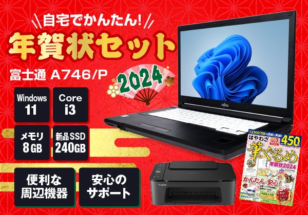 パソコン初心者の方でも安心して年賀状作成を行っていただける便利なセットとなっております。