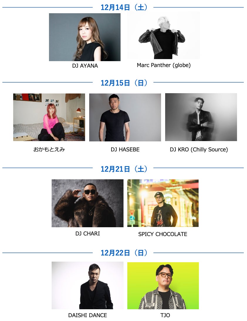 スペシャルイベント:12月14日(土)〜15日(日)、21日(土)〜22日(日)の4日間/Marc Panther (globe)、SPICY CHOCOLATEなど有名アーティストが出演
