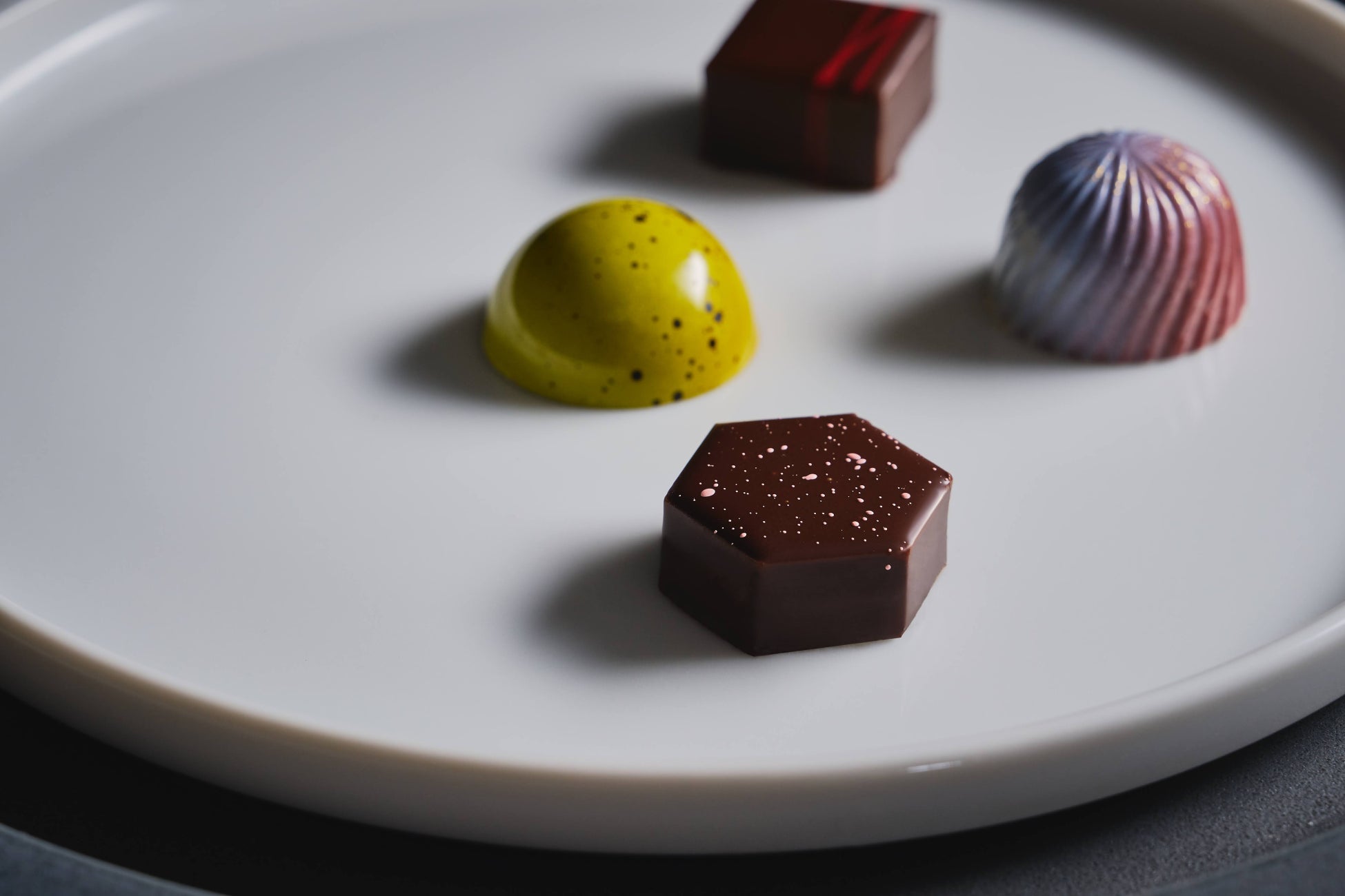 華やかな香りと柑橘類の余韻をもつペルーやコーヒーの香りを閉じ込めたアビック、その他ピスターシュ、クロッカン、エルダーフラワーなど5種類のボンボンショコラと砂糖不使用のショコラを使った糖質制限アマンドショコラ、ルビーチョコレートでコーティングしたマカダミアナッツが入ったイースターエッグ。