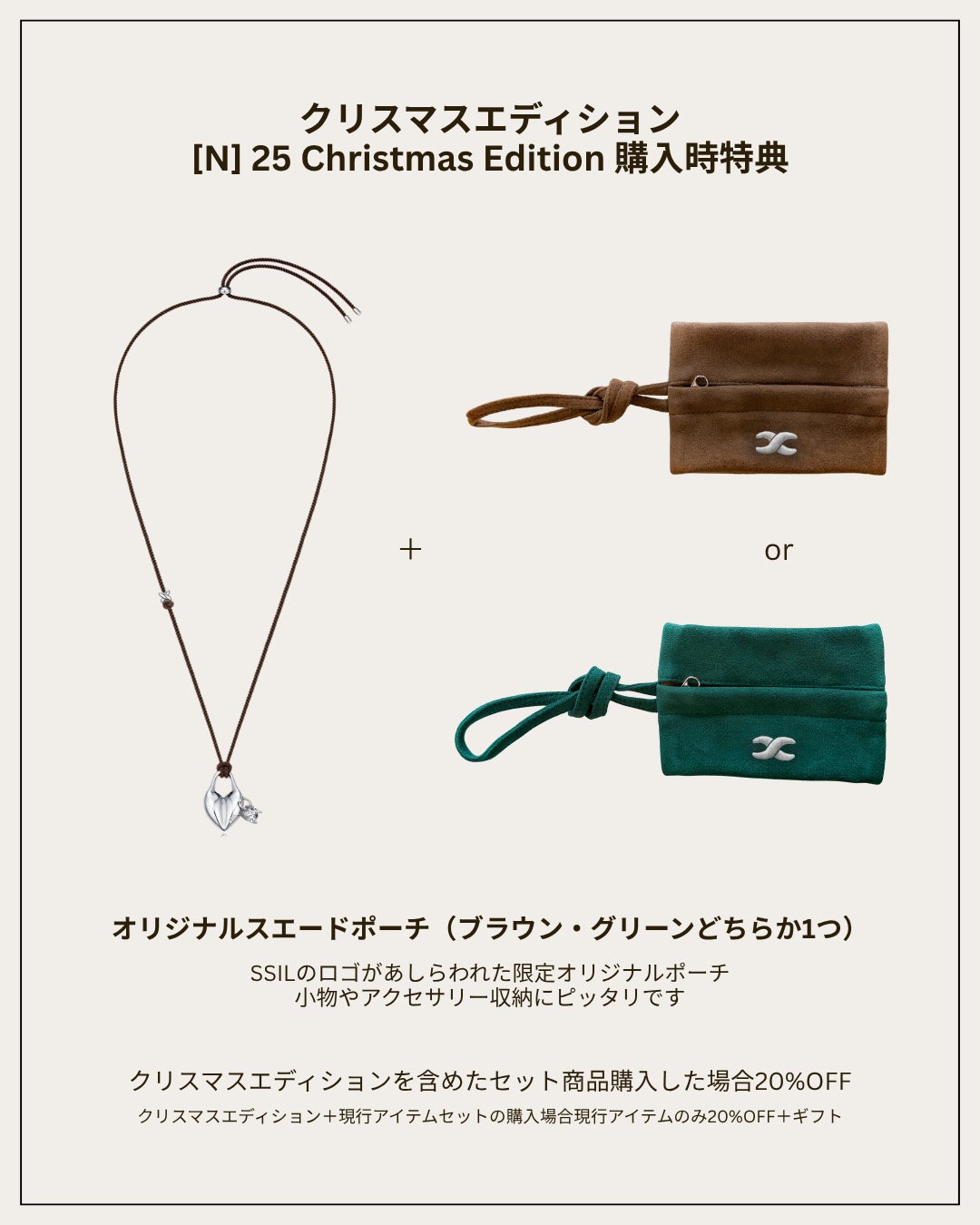 本イベントの注目アイテム [N]25 CHRISTMAS EDITIONをご購入頂いたお客様にはSSILオリジナルスエードポーチ(ランダム)をプレゼントいたします!