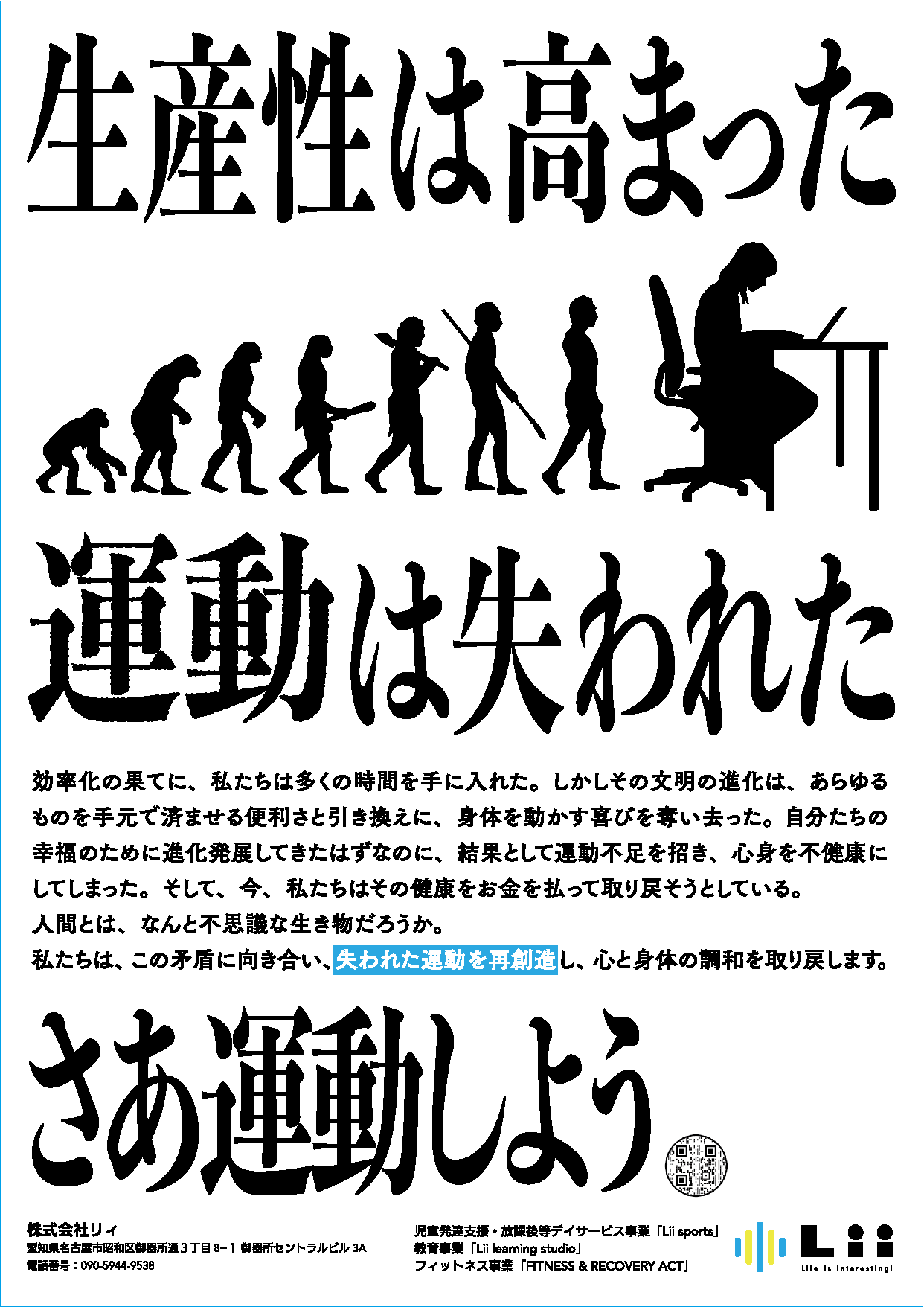 株式会社リィ(本社:愛知県名古屋市昭和区、代表取締役:廣瀬あゆみ)は、現代社会における運動不足の深刻化と、文明の進化とともに日常生活から運動が失われている現状に強い問題意識を持ち、「運動の再創造」をテーマとした新聞広告を掲載しました。