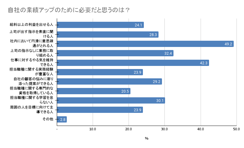 第1位:社内において円滑に意思疎通がとれる人 49.2%