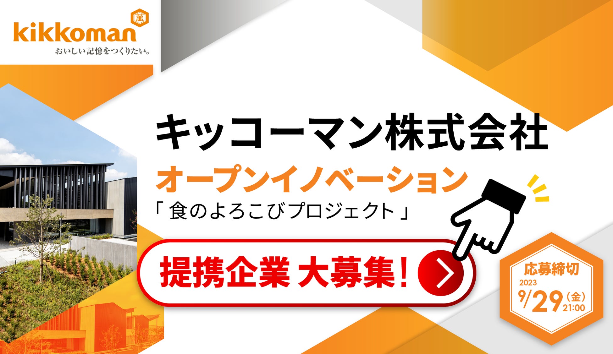 「食のよろこびプロジェクト」とは、「食と健康」に関わるさまざまな課題を解決し、キッコーマン株式会社と共に未来を創るパートナー企業を募集するプロジェクトです。