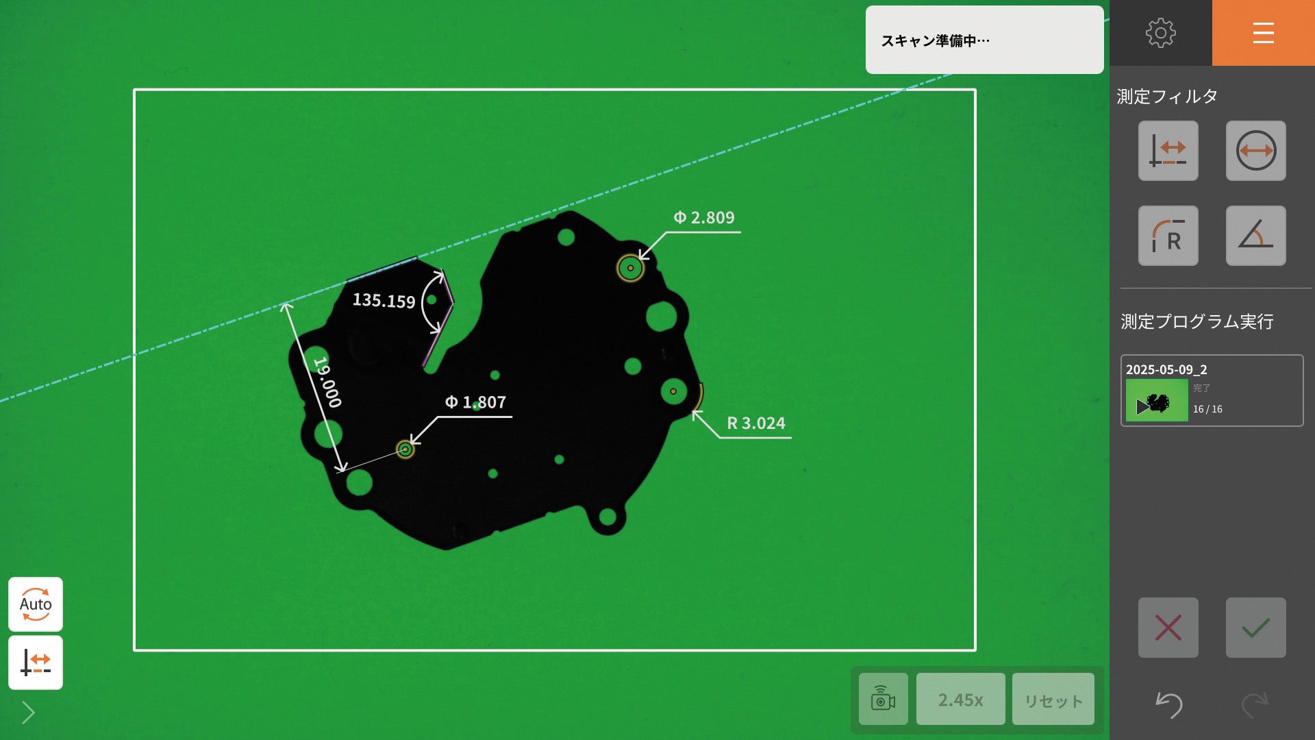 新開発の自動要素検出機能で、素早く簡単に測定手順を作成。ワークを置くだけで測定手順が自動再生し、位置や方向がラフに置かれたワークもすばやく形状認識・特定し、すぐに測定を実行します。