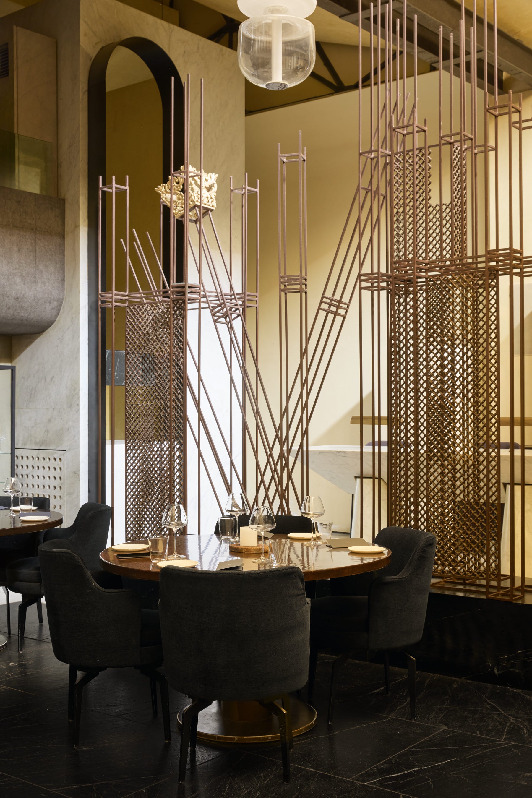 ヘッドシェフのヴァルン・トートラニ(Varun Totlani)が率いる調理チームは、カシミールの森林からゴアの海岸線に至るまでインド各地を巡りながらローカルな食材を探し出し、現代的なガストロノミー技法によってその風味を最大限に引き出しています。メニュー開発を担うのは、独自のテストキッチン(R&Dキッチン)マスク・ラブ(Masque Lab)で、伝統的なインド料理と世界各地の調理技法やトレンドを融合させたメニューを生み出しています。マスク・ラブは、最大14名までの親密な雰囲気を有する、インタラクティブなプライベートダイニング空間としても機能しています。