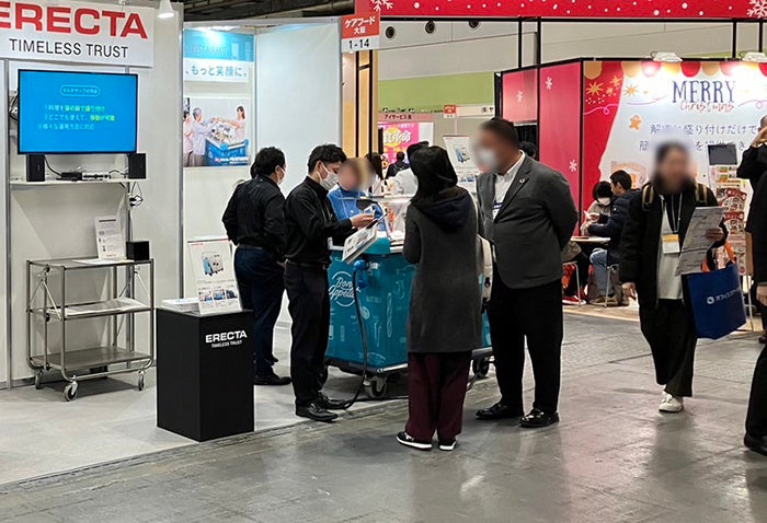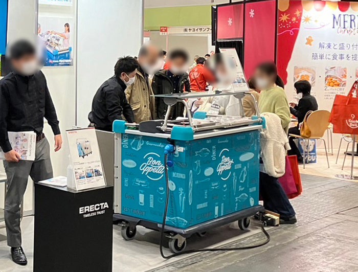 エレクターブースでは、12月8日(金)に販売開始となる再加熱ワゴン「マルチサーブ」を展示。多くのお客様にご来場いただきありがとうございました。