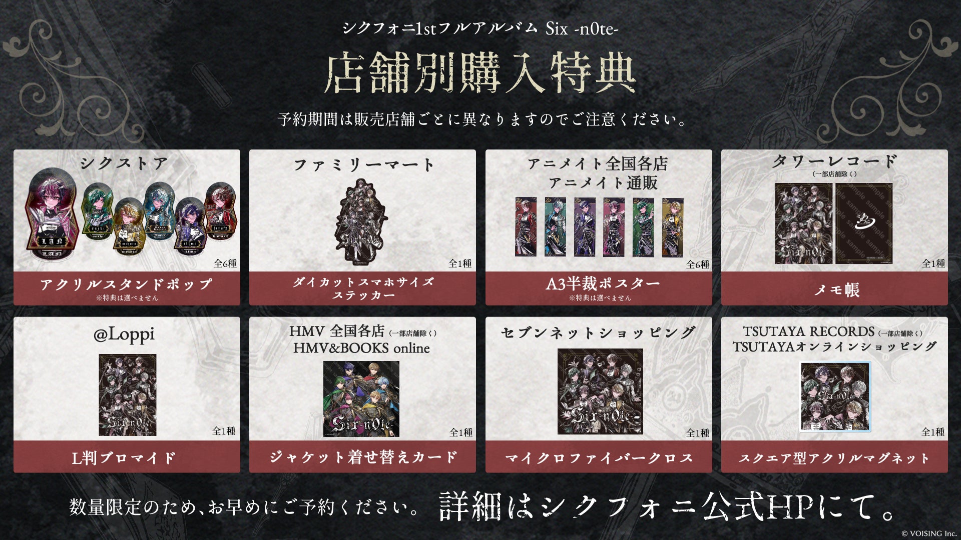 1stフルアルバム「Six ‐n0te‐』初回限定盤A・B購入者限定特典