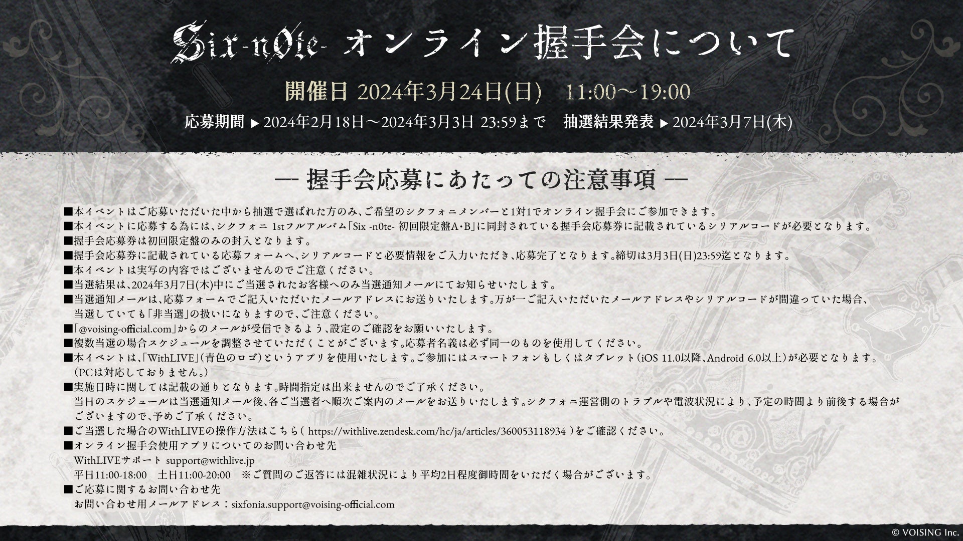 発売方法 | イープラス(https://eplus.jp/sixfonia2024/) 一般販売受付(3/2(土)10:00~) |