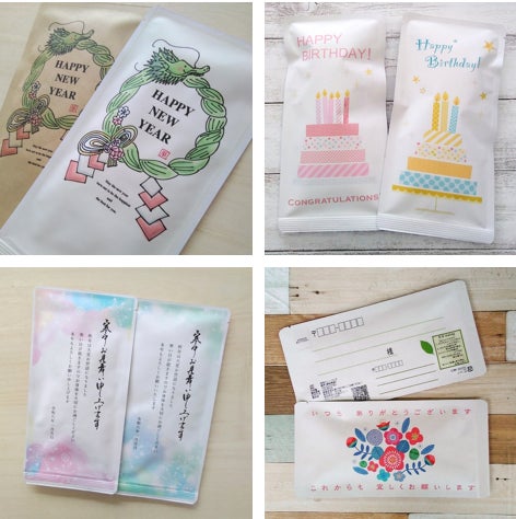 94円切手を貼って ポストに投函するだけで通常の手紙のように送ることができます。裏面の余白に自由に書き込み可能なので、ボールペン、鉛筆などで簡単に書くことができます。季節や行事に合ったデザインの種類が豊富なので、用途に合わせて、季節ごとに、プチギフトとして最適です。企業様、飲食店様のノベルティーギフトとしてもご利用いただけます。デジタルで想いを届けることが当たり前になった時代に、しばらく会っていない友人や、遠くの家族、大切な人にささやかな贈りものをお茶メールで届けてみませんか?