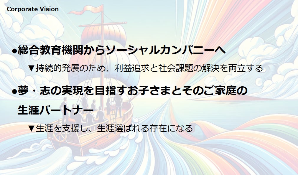 ▼その実現のために、生涯パートナーとして、教育に関するあらゆる悩み・課題に寄り添う存 在へ。