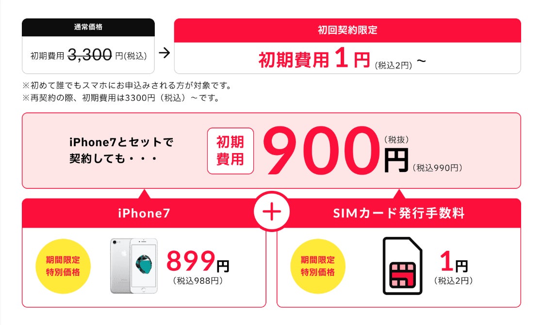 iPhone7とSIMセットを税込み990円で提供中!