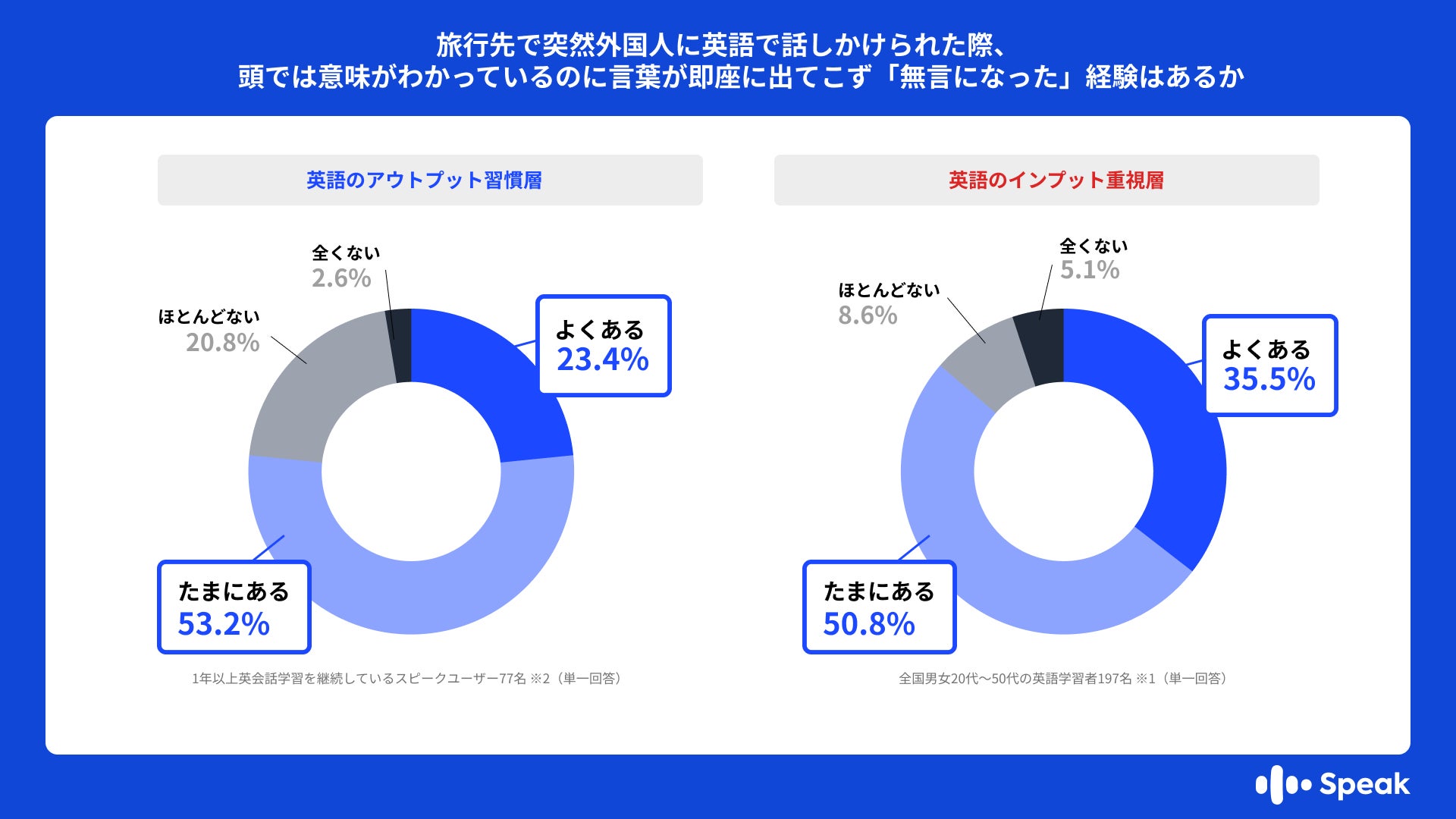 調査方法 :英語のアウトプット習慣層 1年以上英会話学習を継続しているスピークユーザー