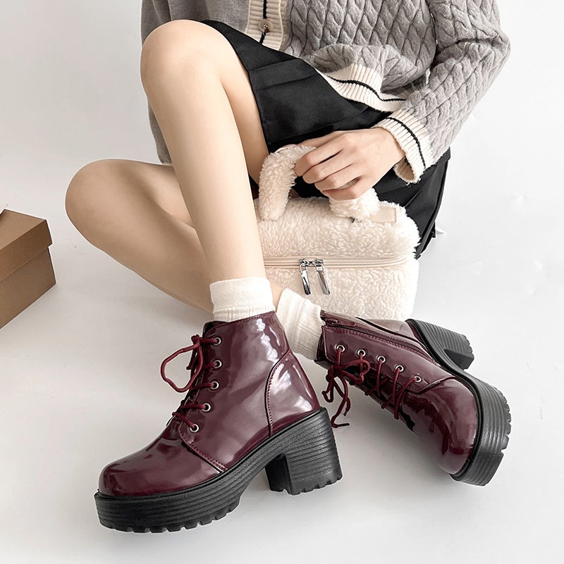 商品名:超軽量厚底 レースアップ ヒール ショートブーツ 2805