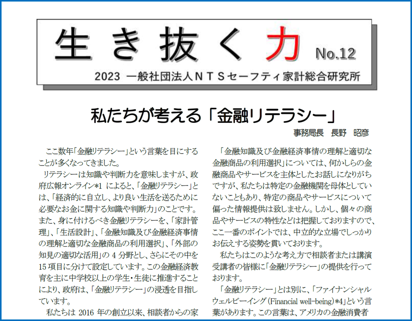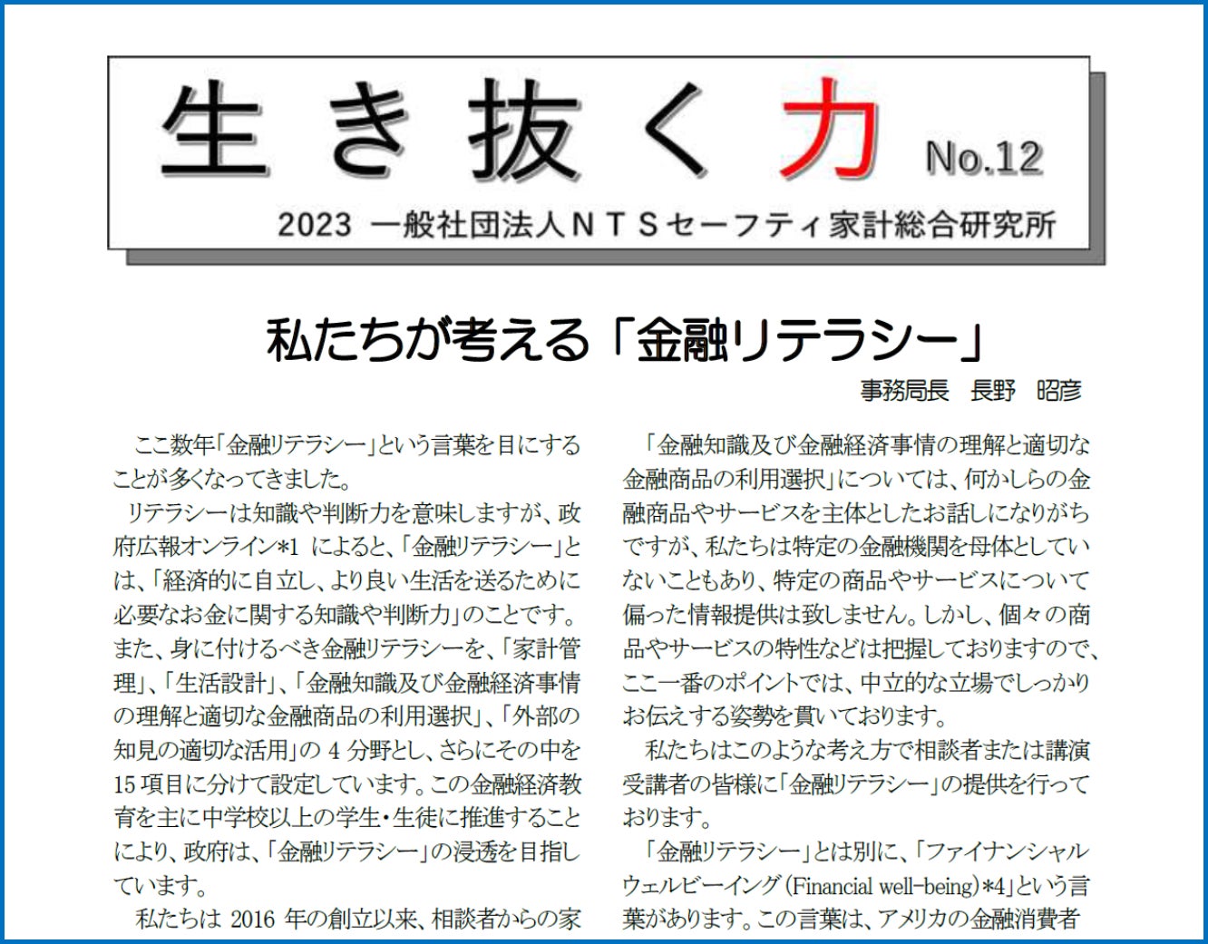 「生き抜く力 NO. 12」を発行しました