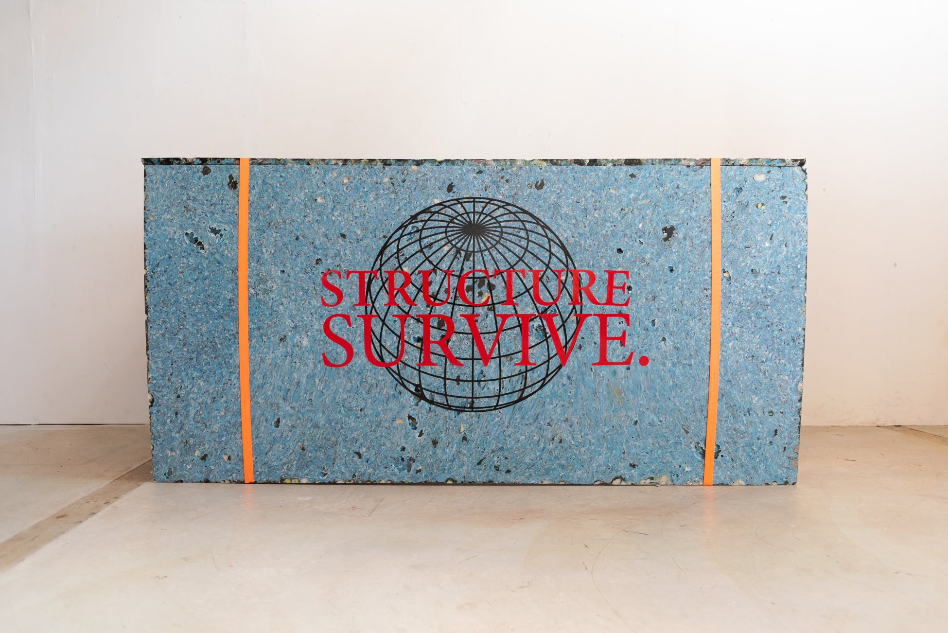 STRUCTURE SURVIVEは、美しい色彩および模様を持つ再生プラスチック端材を活かしたインテリアデザインの提案を通じ、現代の生活において、よりサステナブルな在り方や価値観を提供しています。