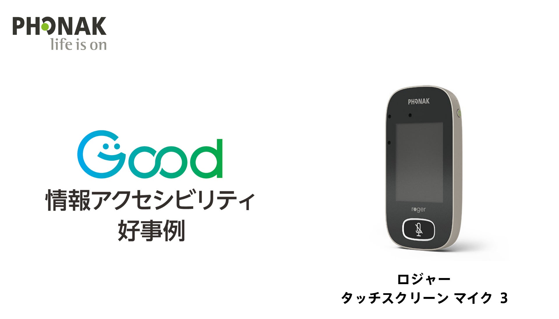 聴覚機器及びワイヤレス通信機器の世界的リーディングカンパニー、ソノヴァグループ(本社:スイス連邦)の日本法人ソノヴァ・ジャパン株式会社(本社:東京都品川区、代表取締役社長:眞鍋 幸)は、同社が提供する「ロジャー タッチスクリーン マイク3」が、このたび「情報アクセシビリティ好事例2025」に選定されたことをお知らせいたします。