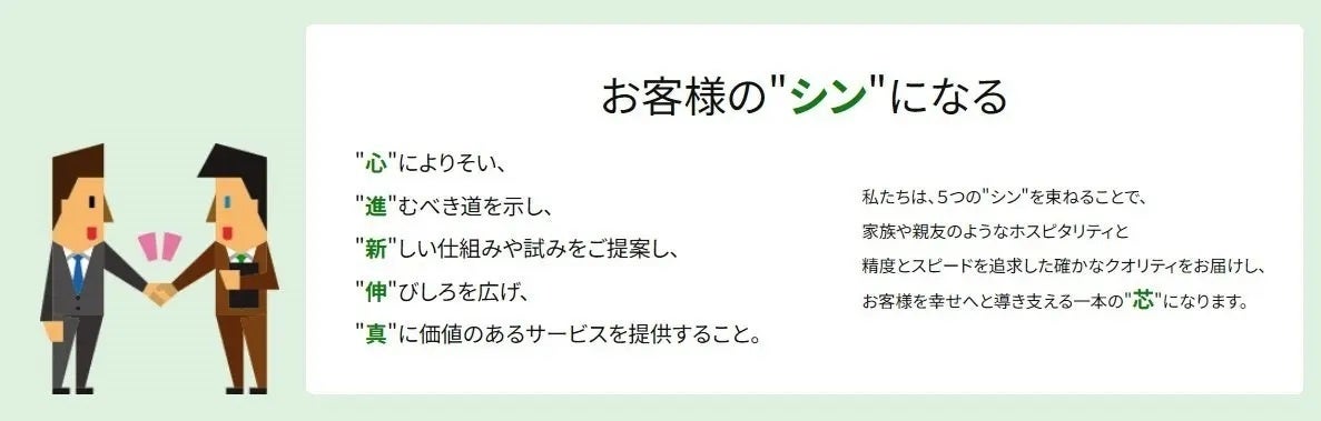 「ありがとう」を集める。それは、常に相手が求めることを考え抜き、その想いに応え、満足を超えた信頼関係を築きあげることに他なりません。一人ひとりが起こす一つひとつの行動が、より多くの「ありがとう」を生み出し続ければ、自社の着実な成長と、関わる人すべての大きな幸せが実現できるはず。だから、私たちシン中央会計は、あらゆるもののクオリティを追求し、今日もたくさんのありがとうを集めるために努力を重ねています。