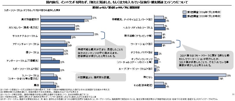 旅行・観光関連コンテンツの最新動向について、高付加価値旅行(27%)とガストロノミー