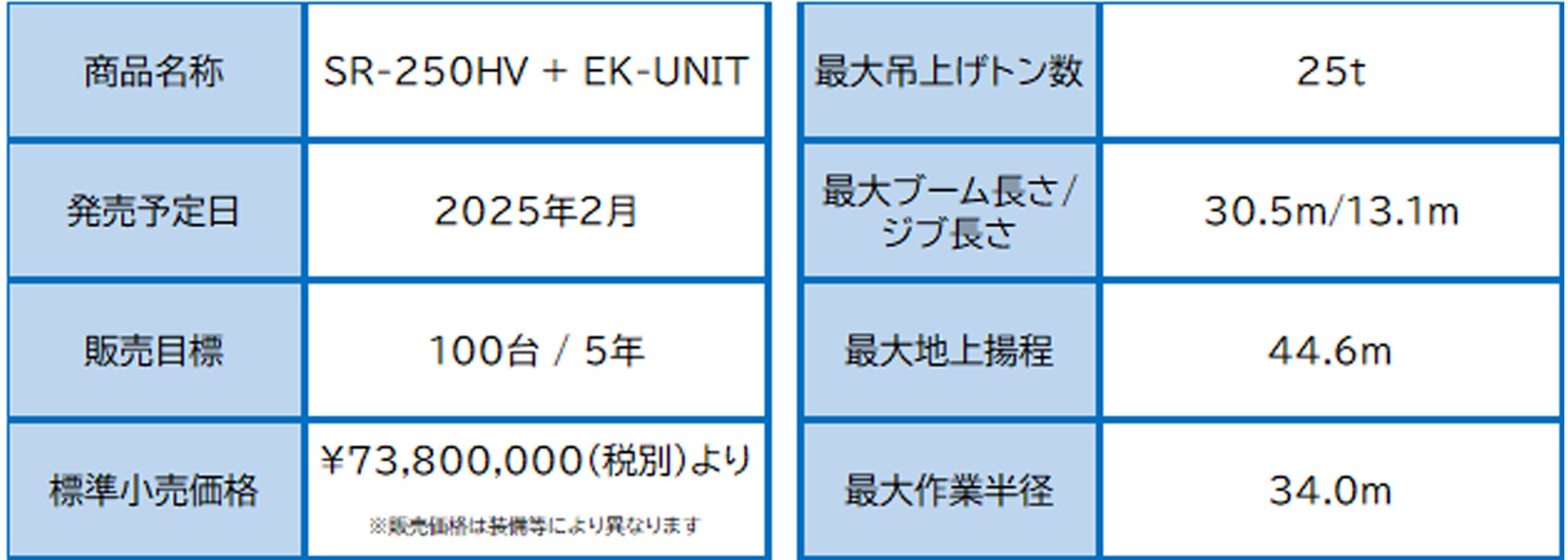 株式会社 加藤製作所(本社:東京都品川区、代表取締役社長:加藤公康)は、2024年11月8日(金)より、かねてより開発していたハイブリッドラフターSR-250HV(ハイブリッド式ラフテレーンクレーン)の受注を開始致します。