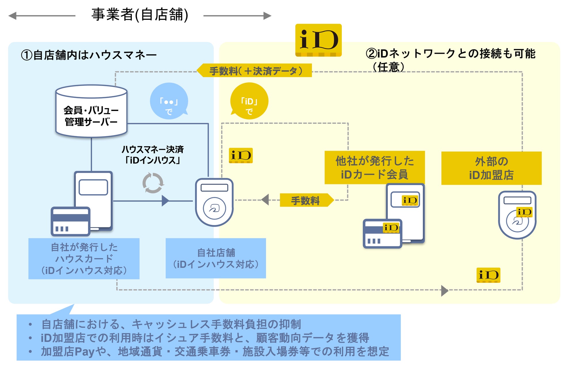 「iD」加盟店での利用による決済手数料収入獲得機会は、ハウスマネーの運営コスト軽減にもつながり、ハウスマネーサービスの持続的な提供と自店舗のキャッシュレス化の促進を可能にします。