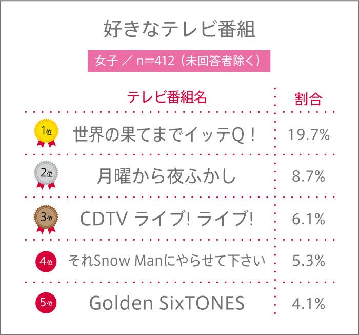 次に「好きなテレビ番組」については下記の通り。