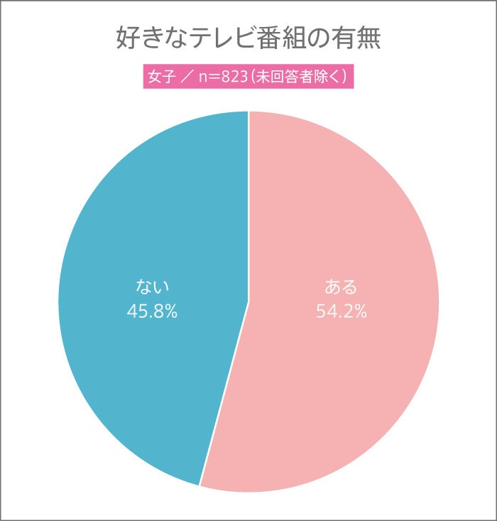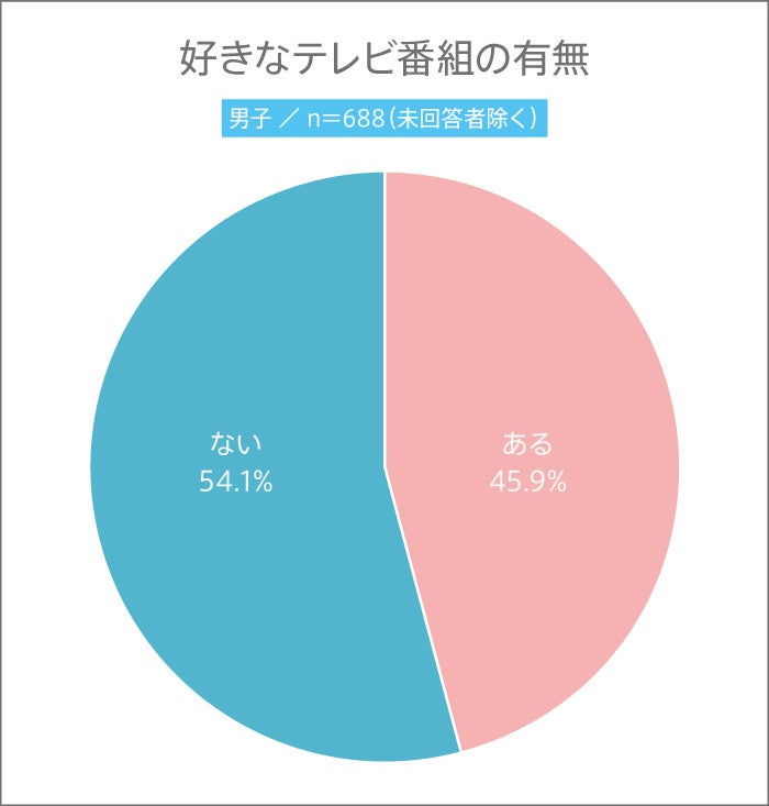 女子は5割以上が好きなテレビ番組が“ある”と回答。一方男子は、“ない”が5割以上でした。