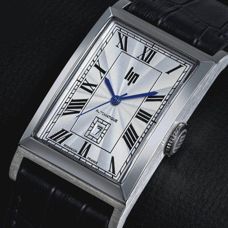 例えば「T26」モデルは、26mm幅、46mm長の長方形ケースにエンジンターン仕上げのシルバーダイヤルを合わせ、黒いローマ数字とブルースティールの剣型針がクラシックでありながらも目を引くデザインです。クロコダイル調のレザーストラップがさらに高級感を醸し出し、ケースバックには自動巻きムーブメントを一部覗ける構造が採用されています。