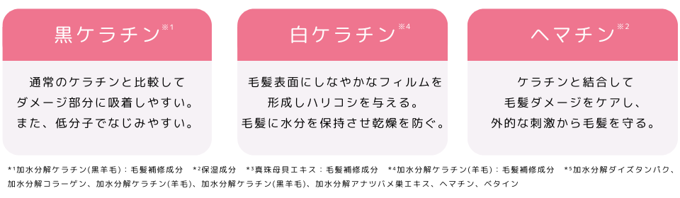POINT1 希少価値の高い黒ケラチン*¹で集中補修