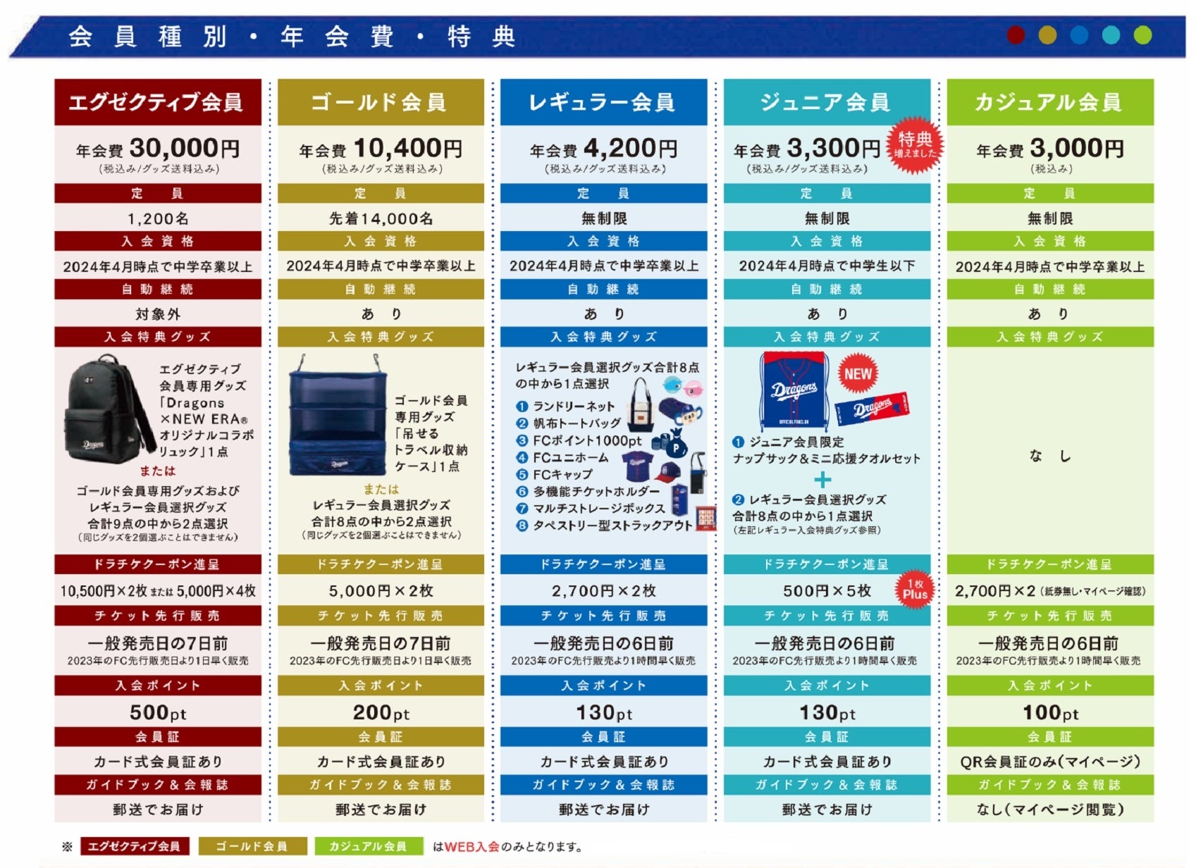 詳しくは中日ドラゴンズ公式ウエブサイト特設ページ https://dragons.jp/fanclub/about/ をご覧ください。