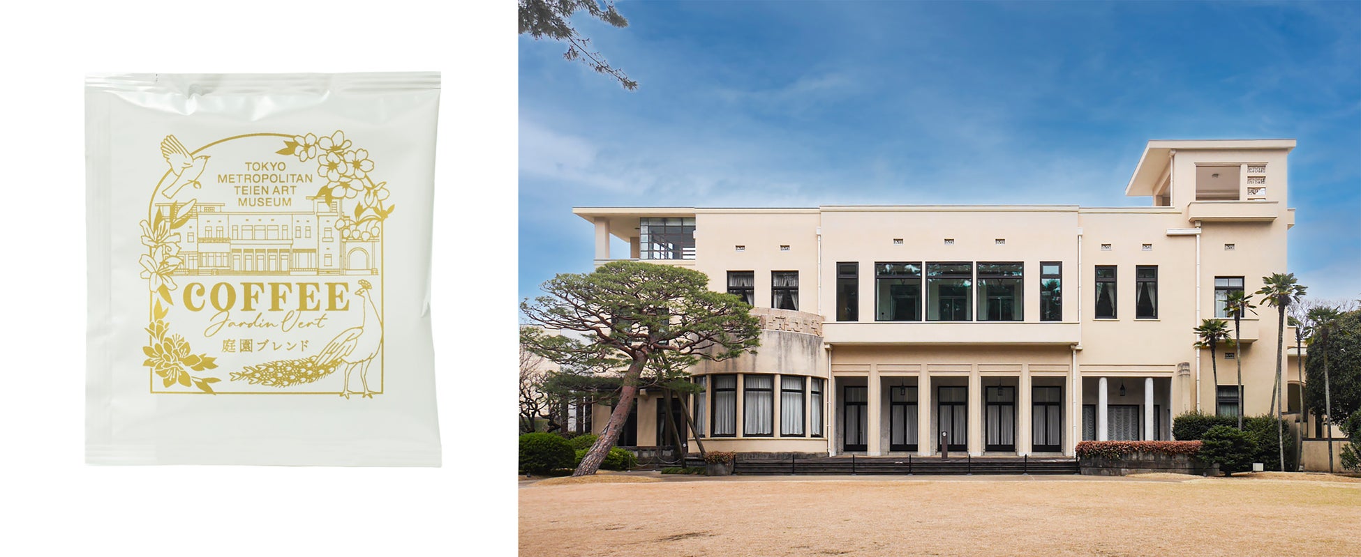 東京都庭園美術館と白金台珈琲 Kuromimi Lapin 店主・伊藤喜章氏がコラボレーションした、ブレンドもパッケージも東京都庭園美術館オリジナル仕様のドリップバッグコーヒーです。