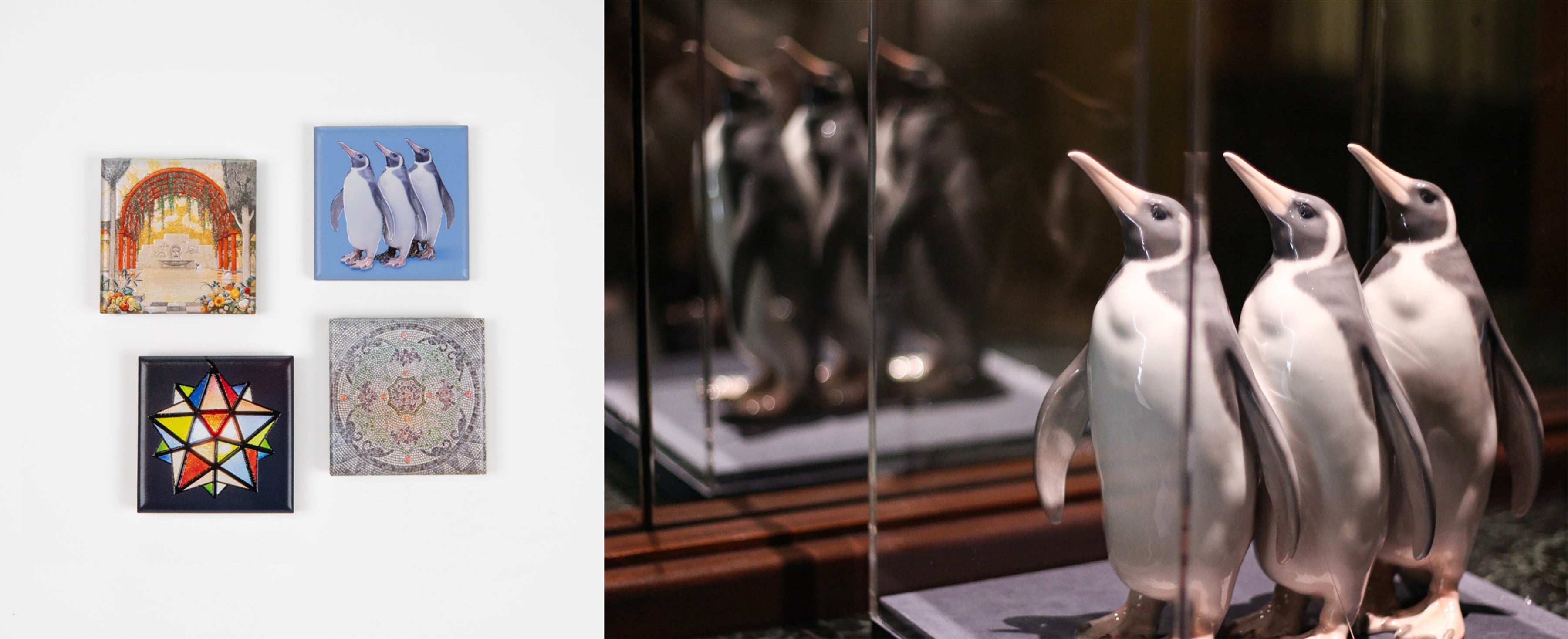 既存で販売されているアートマグネット3柄(姫宮寝室前の照明、大食堂の壁画、正面玄関の床)に加えて、今回の「建物公開2026 アニマルズ in 朝香宮邸」にあわせ、東京都庭園美術館所蔵のロイヤルコペンハーゲンの陶磁器『ペンギン』が仲間入りしました。
