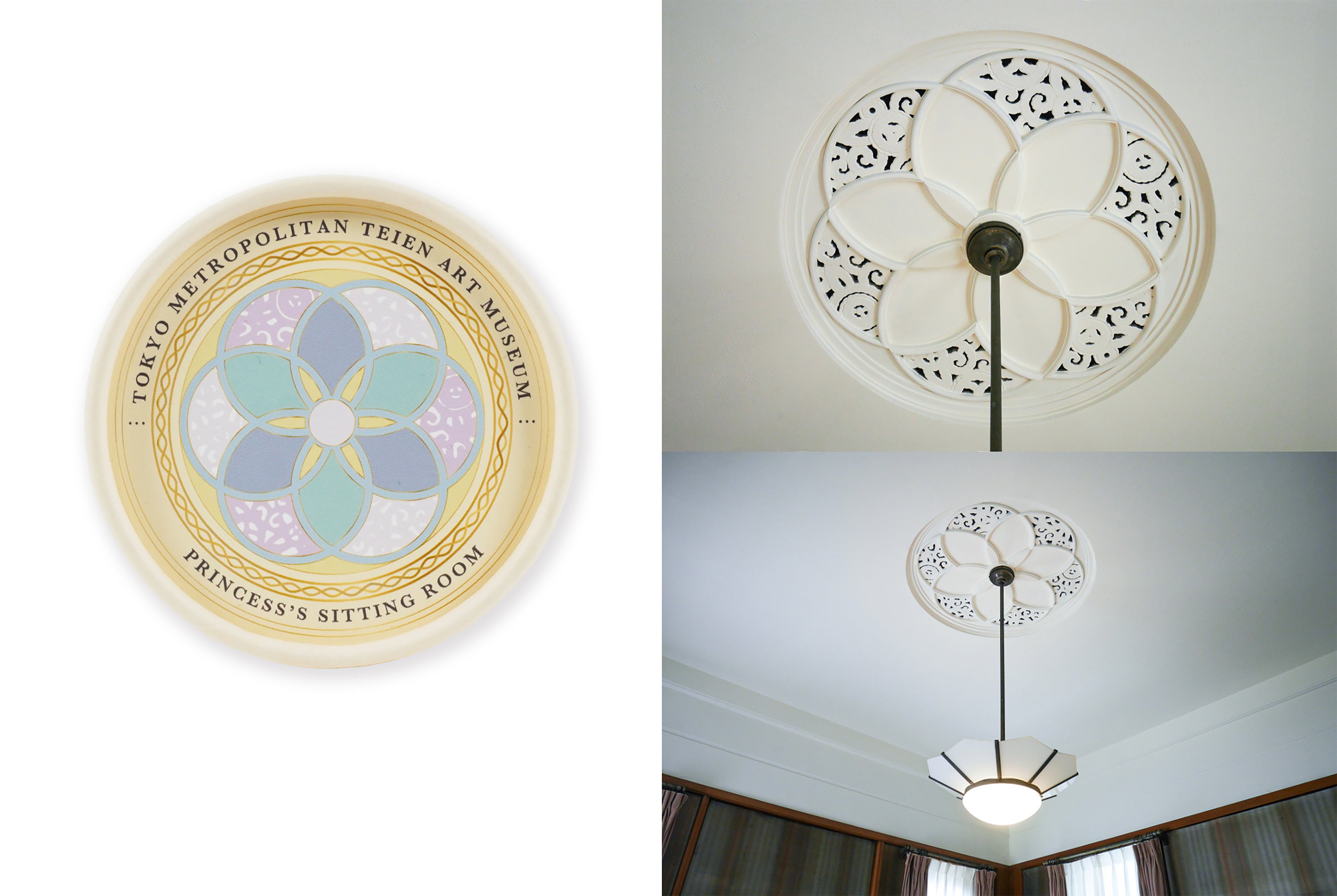 姫宮の部屋は可憐な和らぎを感じさせる装飾が多く、天井の照明まわりもそのひとつです。