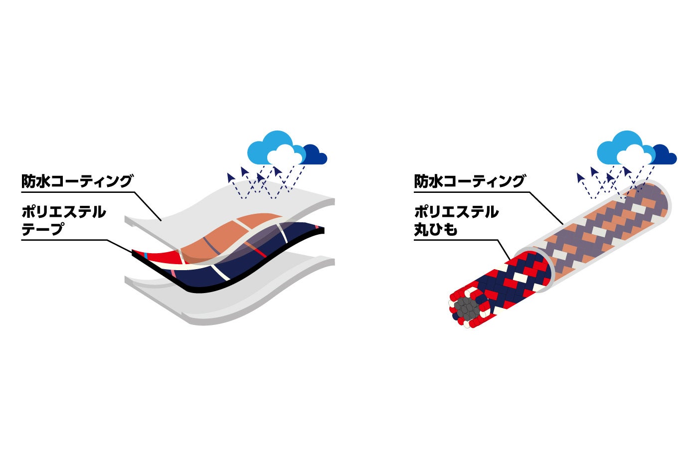『レイニーシリーズ』は、雨の日や毎日の使用でも汚れにくく、お手入れカンタンな「防水コーティング仕様」で、繊維が毛羽立たない素材を採用しています。