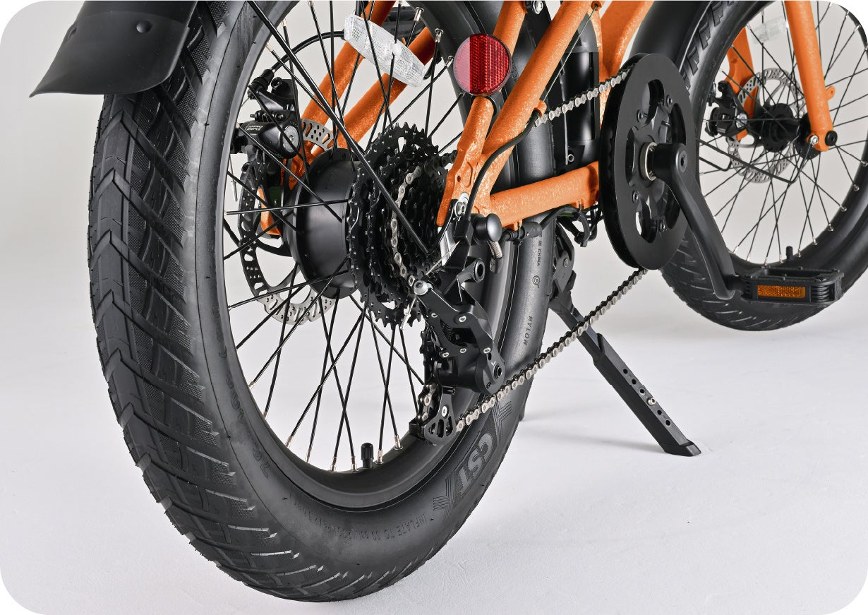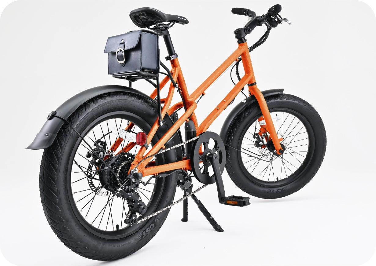フェンダーは他のデイトナ車両とは異なり標準装備。タイヤサイズを極太の20インチ(20×3.0(76-406))とし、適応身長は155cm~185cmとなります。バッテリーは取り外し可能です。これにより室内での充電やバッテリーの交換が容易になります。また、取り外し可能なフロントバスケットも標準装備です。