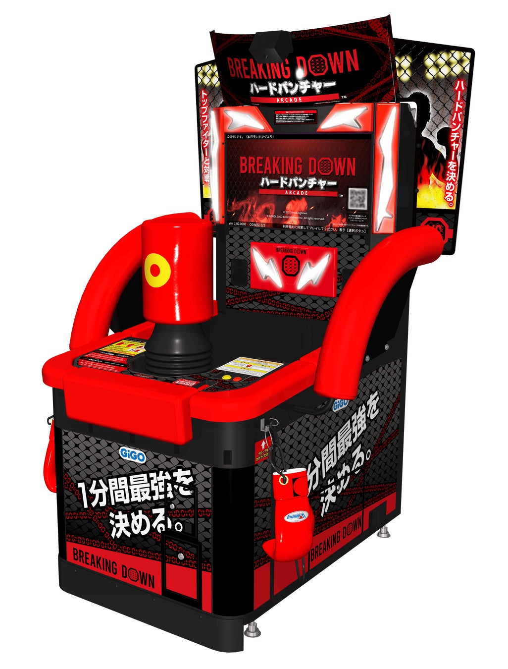 「BREAKING DOWN ハードパンチャー ARCADE」は、GiGOとBreakingDownが共同企画した新しいパンチングマシーンで、BreakingDownの「No.1ハードパンチャー決定戦」で使用されるものと同じ筐体がGiGOグループのお店で楽しめます。パンチ力測定だけでなく「VSファイター」というゲームモードを搭載し、BreakingDownに出場する選手をパンチ力だけでなく「インパクト」や「タイミング」の要素を加えて倒す、エンタメ性の高い内容です。