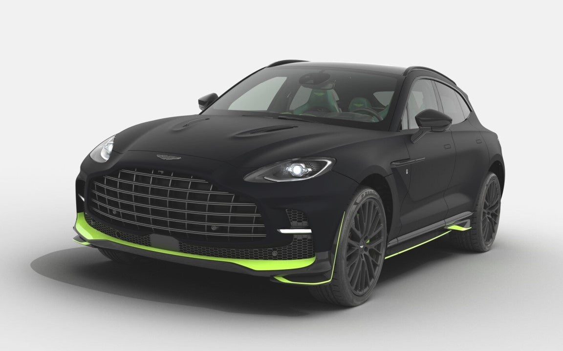 アストンマーティンのラグジュアリーなビスポーク・サービスであるQ by Aston Martinのキュレーションによるユニークなカラーとトリム・パレットは、DBX707のロード・プレゼンスをさらに高め、その強烈なパフォーマンスを際立たせます。専用のサテンオベロンブラック塗装を施した彫刻的なカーボンボディキットは、AMR23 F1®カーやF1®のオフィシャルメディカルカーを彷彿とさせるライムのアクセントでさらに引き立てられています。DBX707 Midnight Podium Editionには、Q by Aston Martinのフェンダーバッジが装着され、アストンマーティン・レーシング・ライムグリーンのブレーキキャリパーが23インチ・サテンブラックホイールに装着されています。