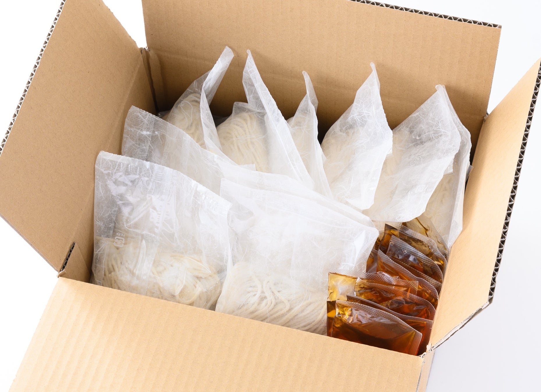 タレ馴染み良い、ストレートの太麺で、もちもち食感が特長です。保存料や科学調味料無添加のため、安心安全に麺の美味しさを味わっていただけます。